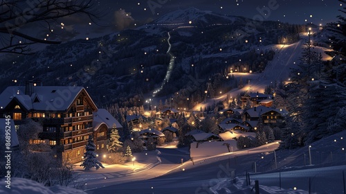 © Bale, Fototapeta premium Ski resort at night