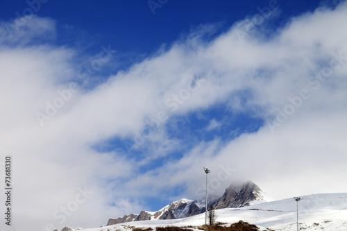 © BSANI, Obraz premium Ski slope and blue sky with clouds