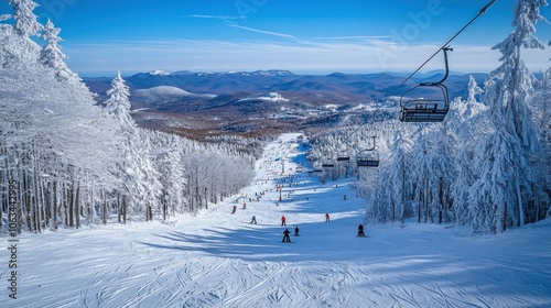 © Viktoriia Boiko, Fototapeta premium Ski slope with snowy trees and mountains