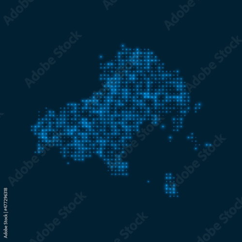 Obraz premium Skiathos dotted glowing map. Shape of the island with blue bright bulbs. Vector illustration.
