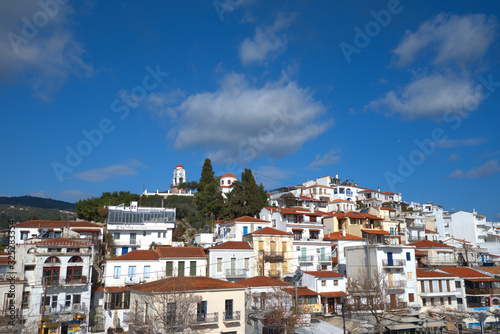 © ACHILLEFS, Obraz premium Skiathos island , the most famous island of Greece is one of the most famous Greek destinations in the whole world, here we see a view of the island from a ship.