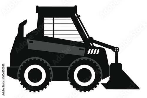 © Salma, Naklejka premium Skid Steer Loader Illustration Construction Equipment Heavy Machinery Work Vehicle Black and White Image Design Graphic Art