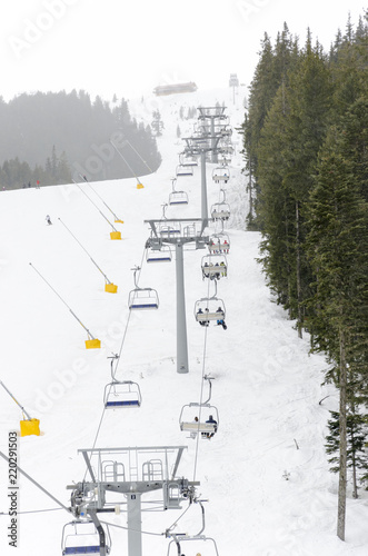 © zefart, Fototapeta premium Skiers on a ski-lift