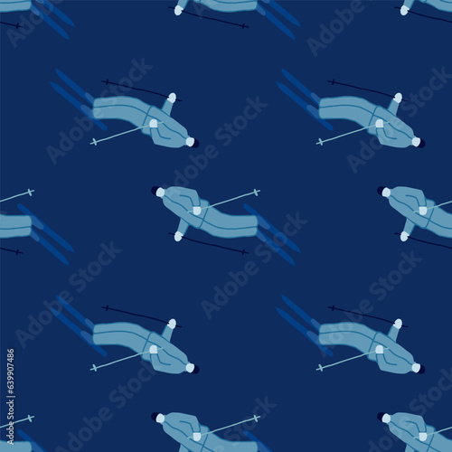 Fototapeta premium Skiers on the slope. Winter sports seamless pattern.