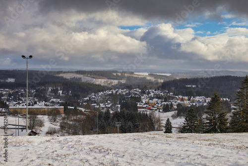 © Mark Lämmchen , Obraz premium Skigebiet Winterwelt, Ski fahren in Schmiedefeld am Rennsteig, Stadt Suhl, Thüringen, Deutschland