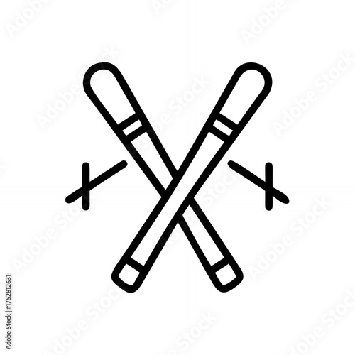 © Igor Craft, Obraz premium Skiing Adventure With Crossed Skis in a Snowy Landscape