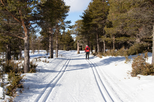 Fototapeta premium skiing road in winter forest
