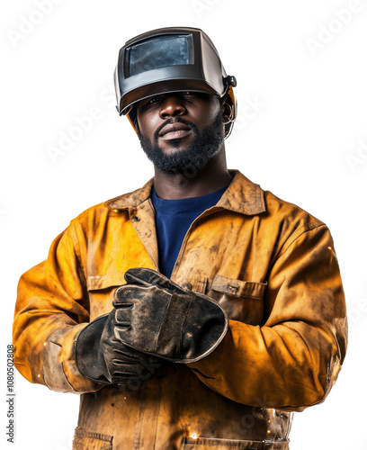 Fototapeta premium Skilled Welder in Protective Gear: A Portrait Capturing the Essence of Industrial Expertise and Commitment to Craftsmanship