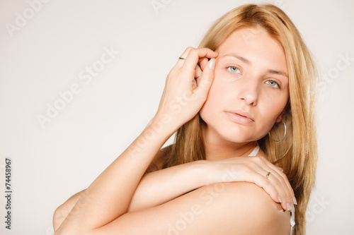 © Voyagerix, Obraz premium Skin care. Woman face with no makeup