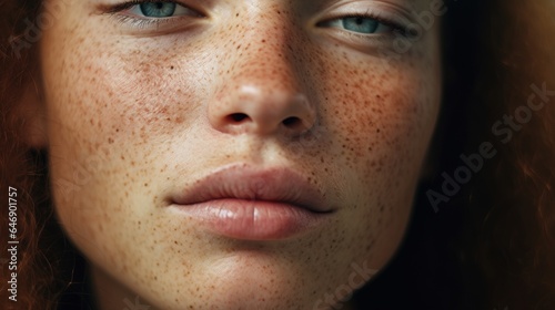 Fototapeta premium skincare for wellness, natural beauty, and confidence for a new makeup company. Cropped shot of the face of a young woman with freckles