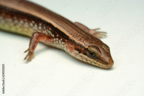 © kasira698, Fototapeta premium Skink close-up, skink macro image on a white background