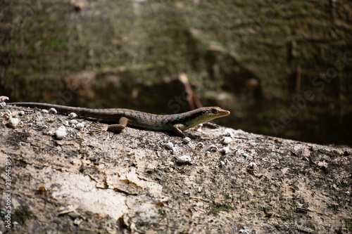© Acres, Fototapeta premium Skink Lizard on a log in Rarotonga