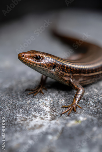 Naklejka premium Skink on Gray Stone: Shiny Body Texture on Clean Background