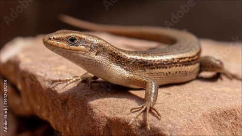 Naklejka premium Skink on Stone: A Close-Up of Reptilian Detail