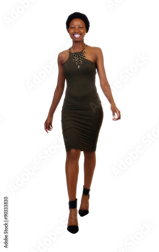 © jeffwqc, Fototapeta premium Skinny African American Woman Standing Green Dress