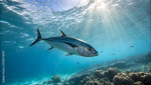 © kabir, Obraz premium Skipjack Tuna Swimming in Blue Ocean Underwater SceneSkipjack Tuna Swimming in Blue Ocean Underwater Scene