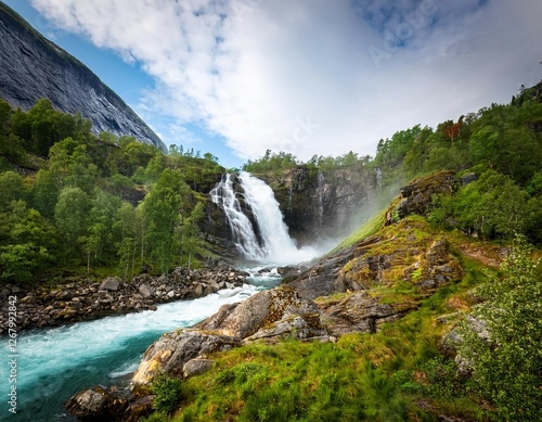 © Terry, Fototapeta premium skrelifallan waterfall surroundings skrelia lyngdal norway