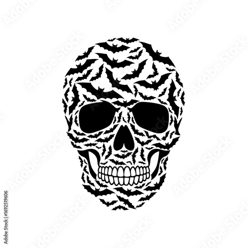 © Digital Art, Fototapeta premium Skull Formed by a Pattern of Flying Bats on a White Background Halloween spooky