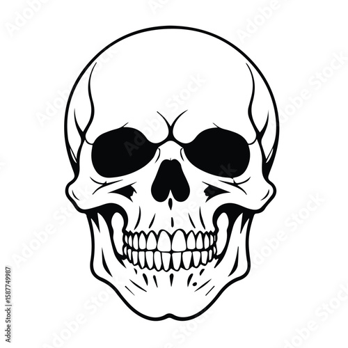 Fototapeta premium Skull graphic with neutral tone. Front view, neutral expression, and detailed...