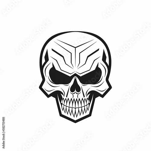 © premiumdesign, Obraz premium Skull Head Black And White. Generative AI