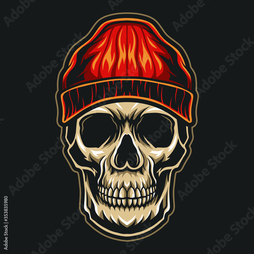 Fototapeta premium skull head wearing skullcap gangster design vector