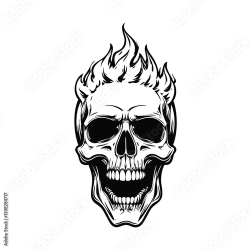 Obraz premium Skull head with fire illustration
