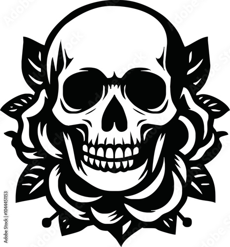 © Avra, Obraz premium skull head with rose vector icon logo