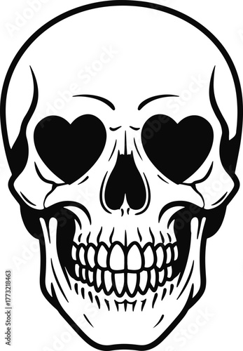 © Precision CAD System, Obraz premium Skull Icon with Heart-Shaped Eyes A Vector Illustration for Design Projects
