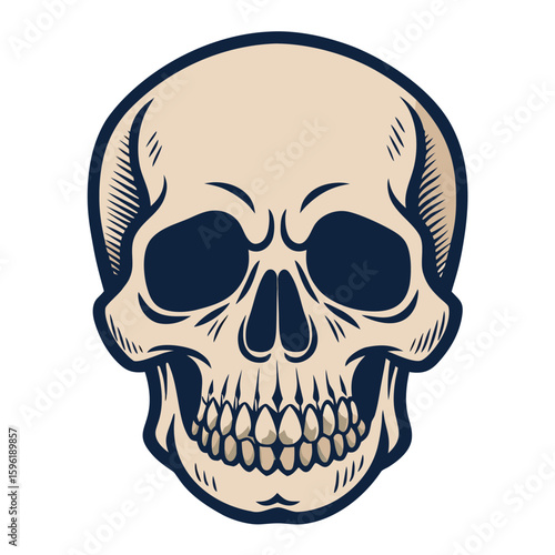 Fototapeta premium Skull Illustration with Line Art Shading and Dark Blue Outline Design