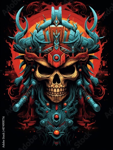Naklejka premium Skull in an Ornate Helmet, Cyberpunk Art