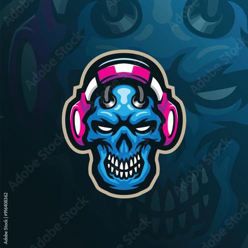 © Ahmadbrutalism666, Fototapeta premium Skull mascot logo design vector with modern illustration concept style for badge, emblem and t shirt printing. Skull gamer illustration for sport and esport team.