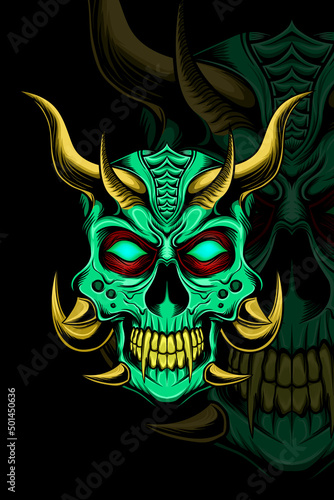 © DJUNARSO, Naklejka premium Skull monster green color vector illustration