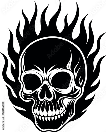 © Dream, Obraz premium Skull on Fire. Realistic Flames and Bone Design