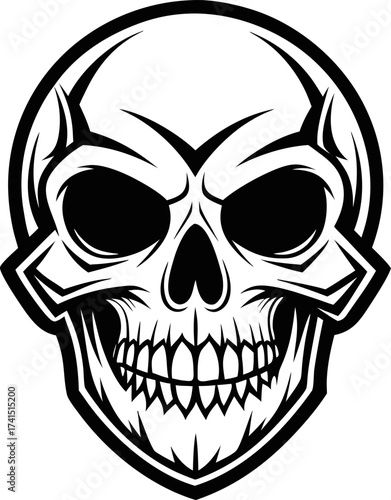 © Rasel, Fototapeta premium Skull, vector line art icon, black and white, white background