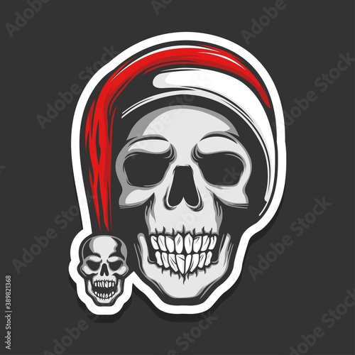 © irondah, Fototapeta premium Skull wearing Santa Claus hat
