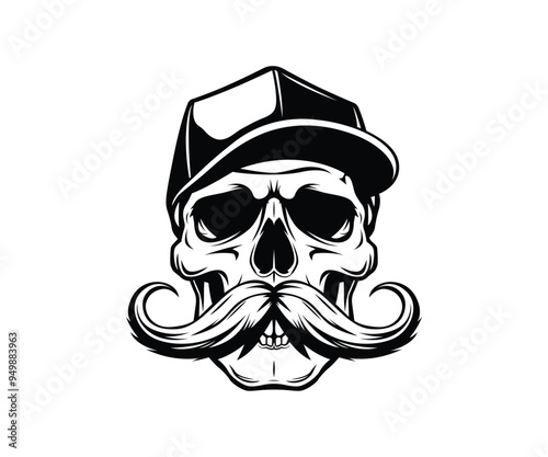 © Pixes, Fototapeta premium Skull with big mustache and wearing a cap vector