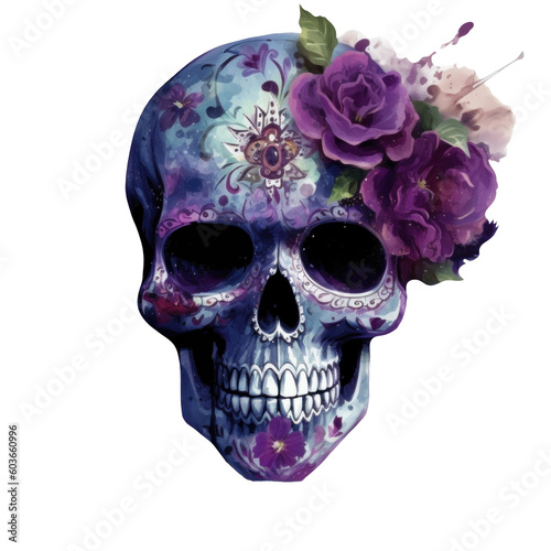 © southjourney, Obraz premium skull with flowers, generative AI