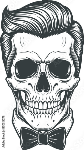 © Creative_Tess, Fototapeta premium Skull with Hair and Bow Tie silhouette, vector file