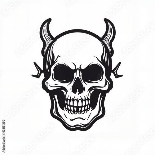 © Alla, Fototapeta premium Skull with Horns in Bold Style Representing Edginess