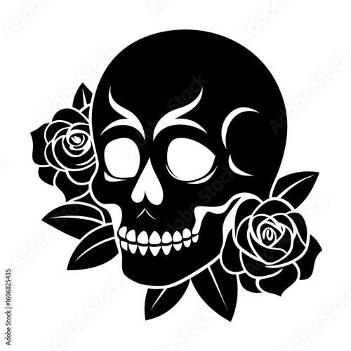 Fototapeta premium Skull with Roses vector clean black silhouette design white background