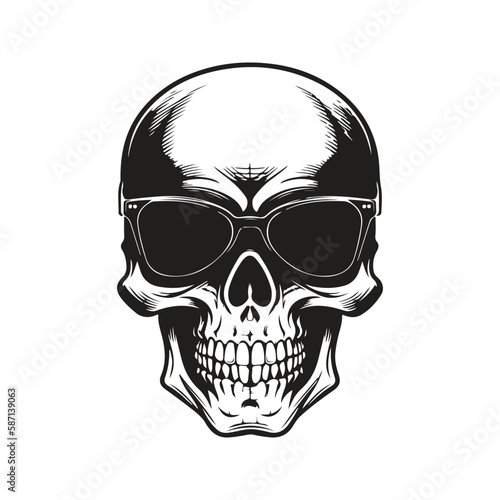 Fototapeta premium skull with sunglasses, logo concept black and white color, hand drawn...