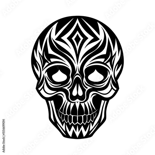 Fototapeta premium Skull with Tribal Face Paint Markings Vector Silhouette