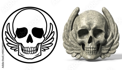 © Aditya, Fototapeta premium Skull with Wings Design and 3D Rendered Skull Emblem.