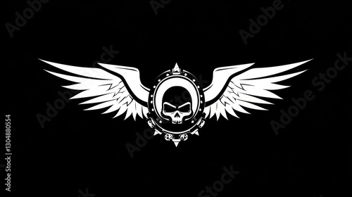 Obraz premium Skull with wings emblem, graphic design, black background. Possible use...