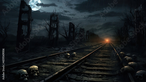 © javier, Naklejka premium Skulls Along a Deserted Railway