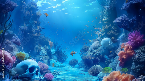 Fototapeta premium Skulls on the underwater with the colorful, Illustration