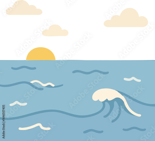 Obraz premium 바다, 일몰, 파랑, 하늘색, 구름, 벡터, sky, 대양, 태양, 여름, 물결, 경관, 여행, 물고기, 물가, 계절, 배