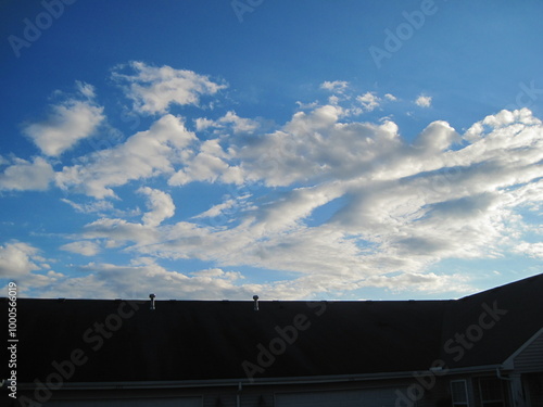 © Amanda, Fototapeta premium sky and clouds over building roof