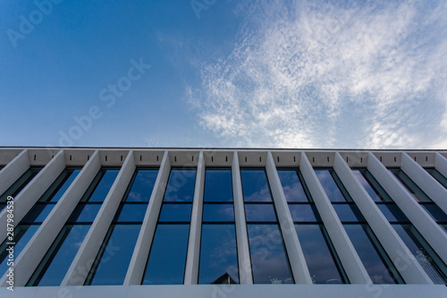 Fototapeta premium sky and exterior glass wall modern building. Modern office building