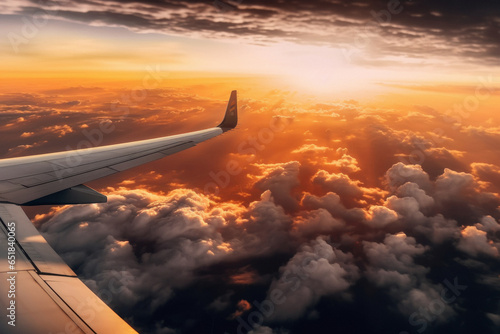 © PRASANNAPIX, Naklejka premium Sky and sunset time view from flying airplane.
